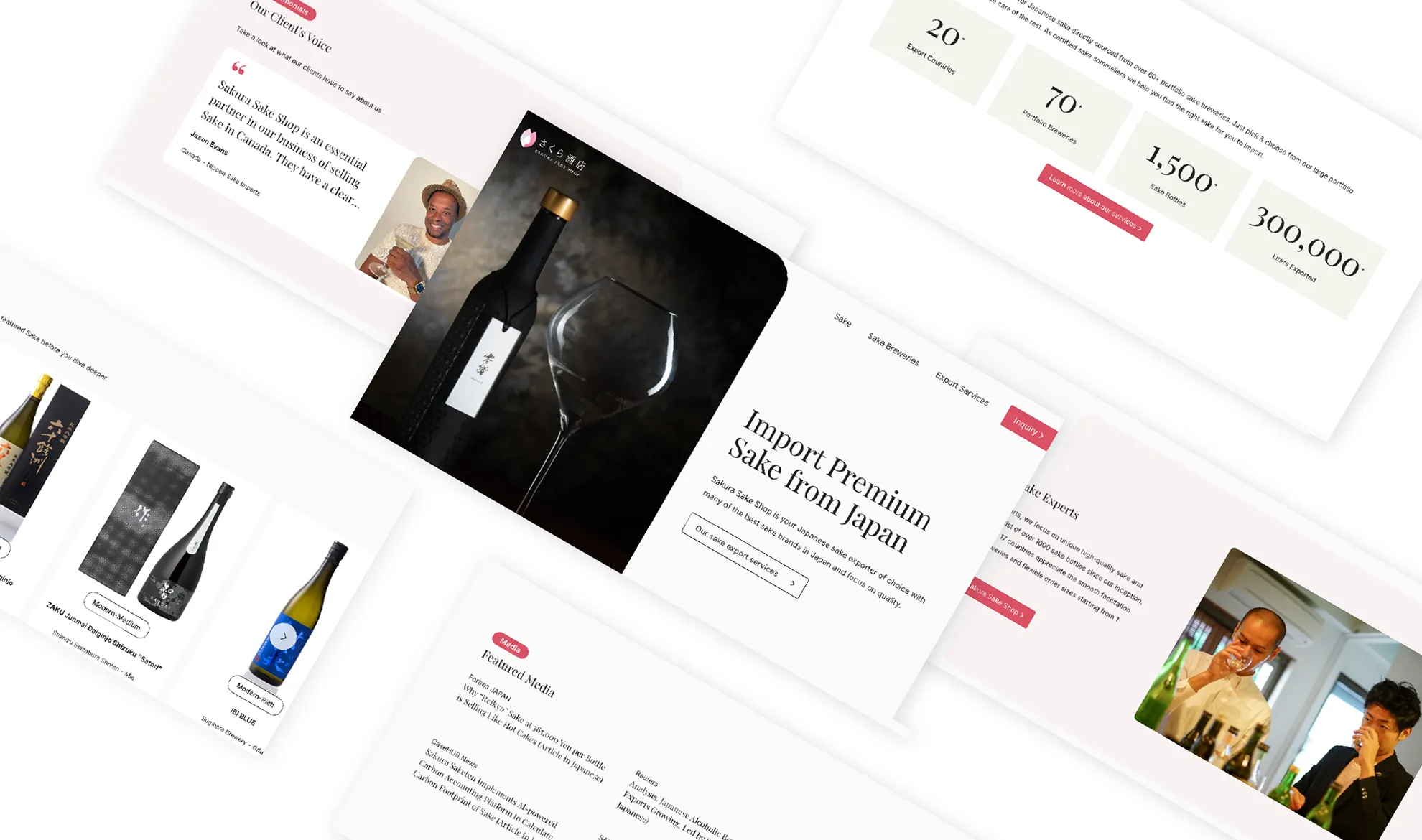国内外の日本酒ファンと海外バイヤーをつなぐ、さくら酒店様の「輸出専用サイト」をWebflowで新規構築・公開しました。バイヤーの方が必要な情報に素早く辿り着けるよう、情報設計と多言語対応を土台から再設計しています。